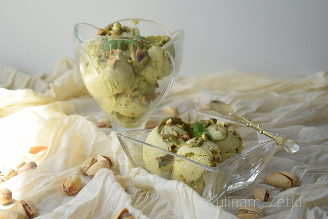 Jak lato to gorąco, jak gorąco to chętnie jemy zimne lody. Proponujemy dla was lody o smaku mocno ostatnio uwielbianym tzn. pistacjowym. Do tego odrobina kremu pistacjowego do dekoracji i kilka posiekanych pistacji i po prostu niebo w gębie.